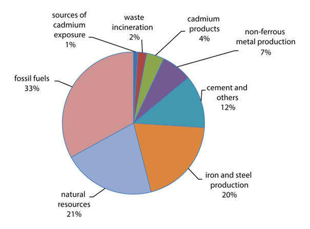 Farklı kaynakların insan kadmiyum maruziyetine göreceli katkısı.
